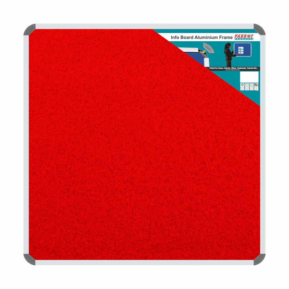 Enhance your workspace with the stylish and functional Info Board. This 900x900mm board features a sleek anodised aluminium frame that complements any office decor. It's versatile, allowing for both horizontal and vertical mounting. The red felt surface ensures your notices and documents are always visible.