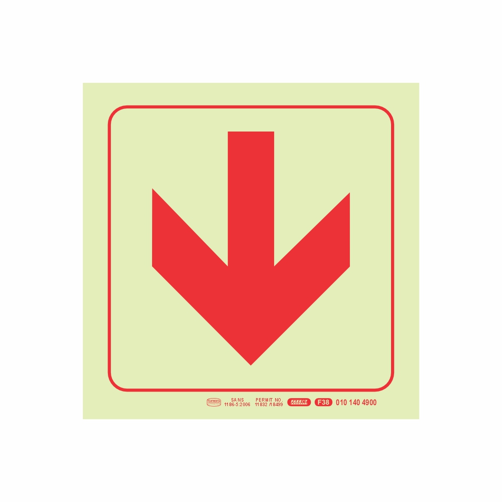 Photoluminescent 190mm Safety Sign F38 Arrow Down